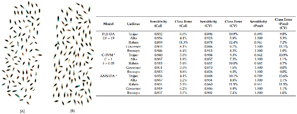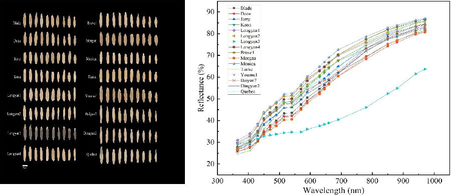 通过多光谱成像分析鉴定燕麦、多年生黑麦草种子的品种。16个燕麦和5个多年生黑麦草品种的鉴定。采集到不同品种的光谱波长以及平均反射率。