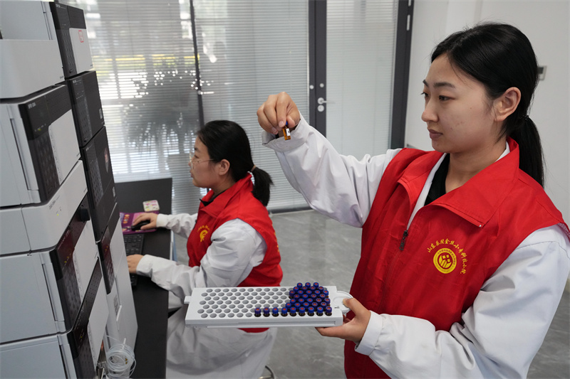 山东省乐陵市金丝小枣科技小院研究生在工作站在检测发酵新产品的多糖含量。