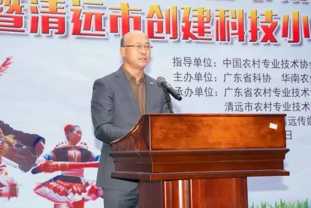 中国农技协理事长、中国农业大学原校长柯炳生,清远市委常委、统战部部长刘汉球,广东省科协党组书记、常务副主席郑庆顺,华南农业大学副校长仇荣亮出席了此次授牌仪式并致辞。