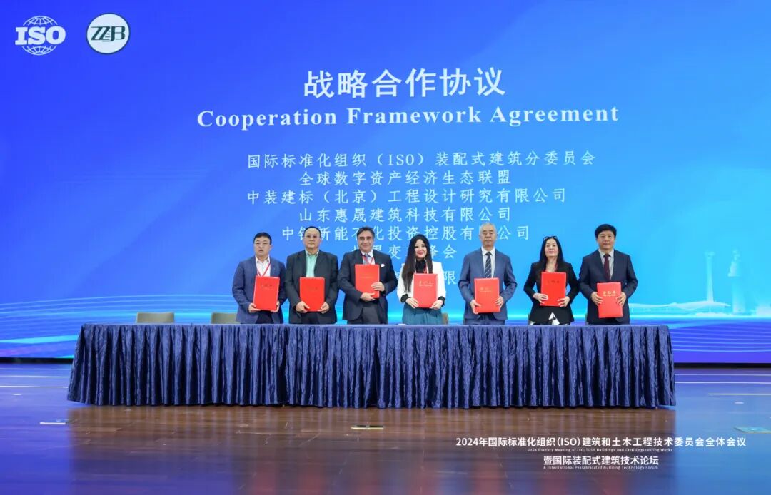 会上,为国际标准化组织(ISO)建筑和土木工程标准试点示范城市、优秀个人、优秀贡献单位颁奖,ISO装配式建筑分委员会分别与乌克兰中国工业商业协会、山东惠晟建筑科技有限公司等协会、企业签署合作框架协议。