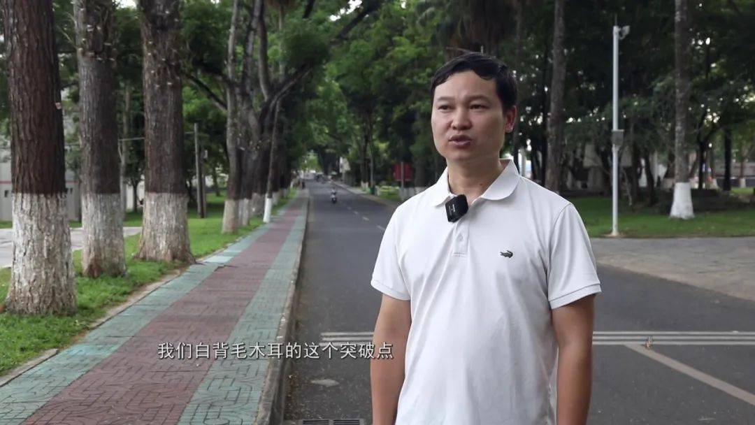 吴明伟,海南闽林农业有限责任公司总经理,儋州良好的气候条件及丰富的橡胶资源,让企业选择在推赛村建立了白背毛木耳标准生产示范基地,一块绿地、多份收益的林下产业在这里落地生“金”。