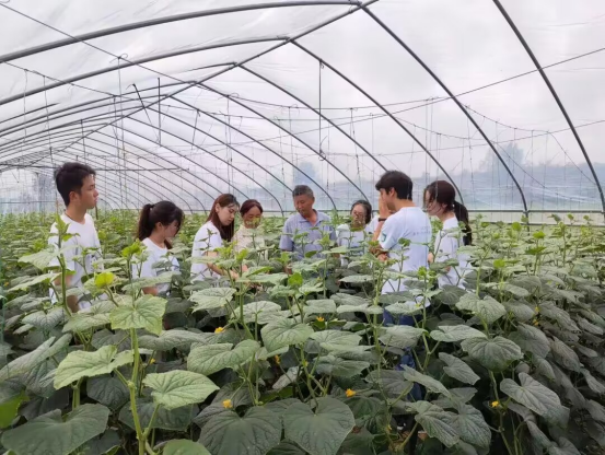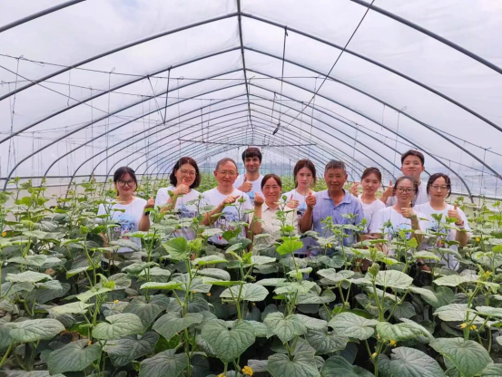 通过长期调研和研究,团队研发出功能性新品种——“玉秀2号”,推广面积2万亩,年亩产量7000kg,亩产值高达5万元,新增经济效益1.2亿元,带动就业3000余人,已成为丁集种植户的致富果。团队成员与种植户同吃同住,实现零距离交流;将问题整理归纳,开展黄瓜新品种栽培培训,组织零门槛咨询;与种植大户企业结对,坚持零费用指导。2021年至今已累计开展黄瓜生产技术培训140余场,培育乡土农业科技人才1800余人,结对种植大户20余户。