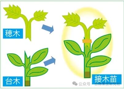 矮性台木(即矮化台木)的地上部露出程度越多,初期深植障碍越少,生育越好,但在结出果实的同时,树势会明显下降。相反,台木的露出越少,树势就越强,特别是不暴露,在穗木品种上产生根的情况,矮性(矮化)的效果就会消失,因此根据台木的露出程度也可以调节树势。