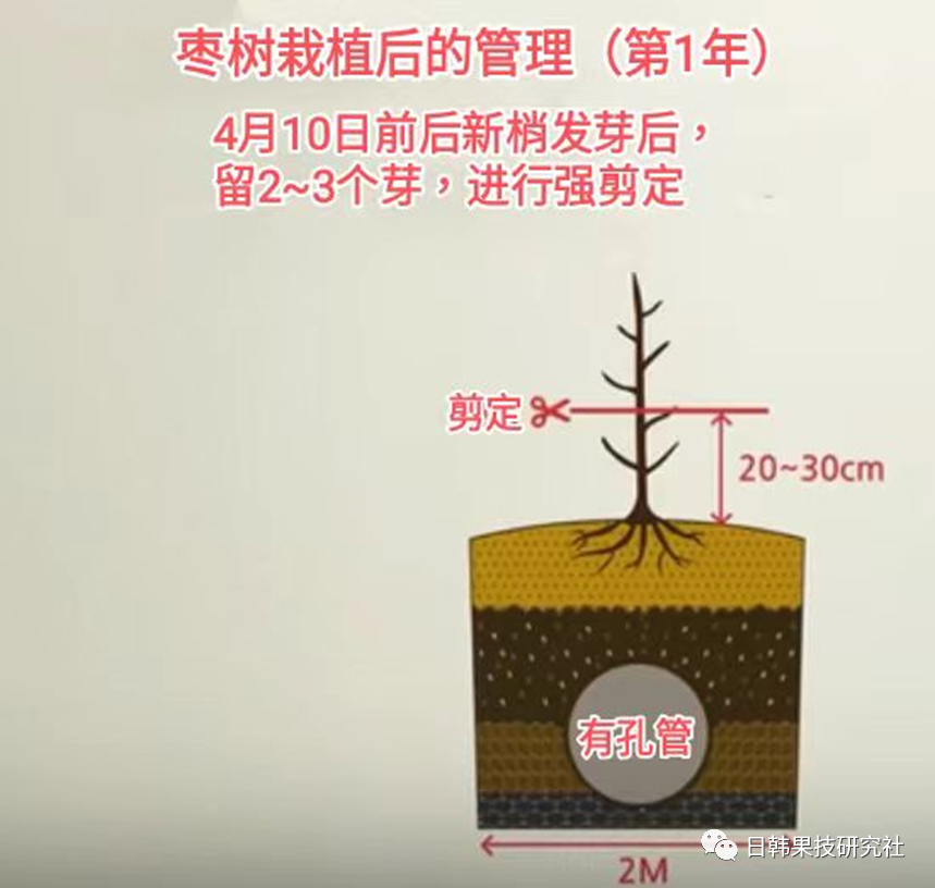 栽植之后要从地面开始到20cm左右进行强剪定。这样才能使新芽长得强旺,从而长出优质的枣树。